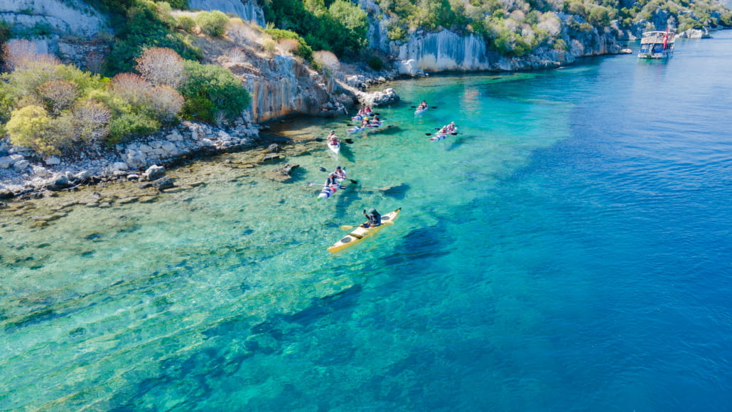 Kekova Kayak turu, bir güvenlik brifingi ve kürek eğitimi ile başlar ve ardından eğlence başlar!